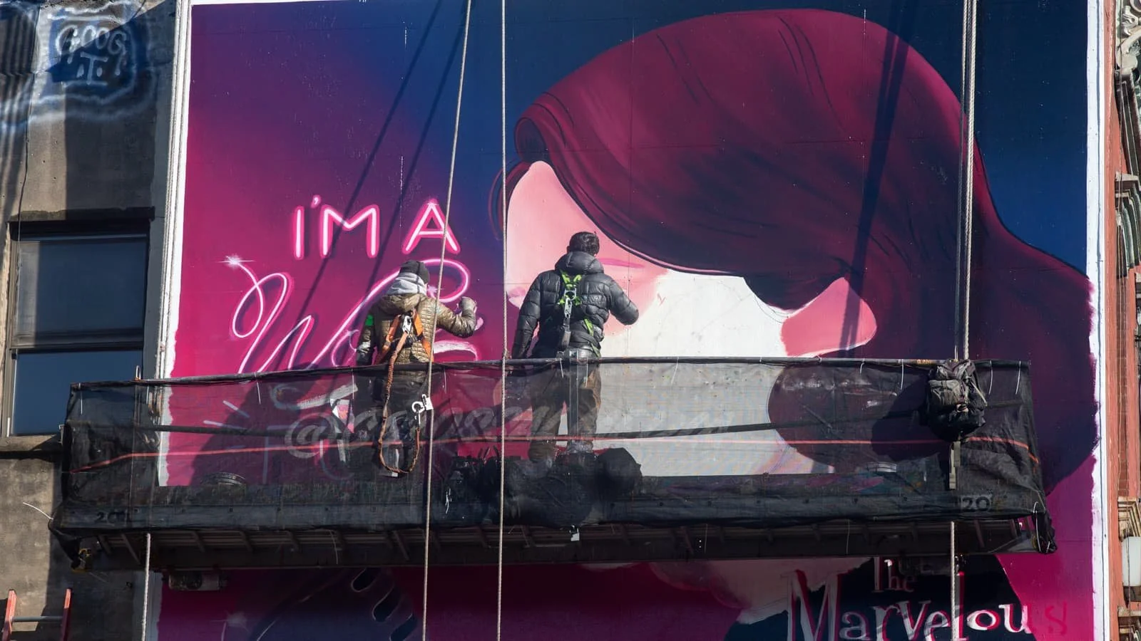 In the lead-up to season four of The Marvelous Mrs. Maisel, Amazon Prime commissioned two stylish portraits of the show’s heroine. In true feminist fashion, Amazon opted for Colossal Studios to artist source two New York women for the renderings. The incredible Virginia Zamora and Louisa Cannell were introduced to the project, and the rest was history.