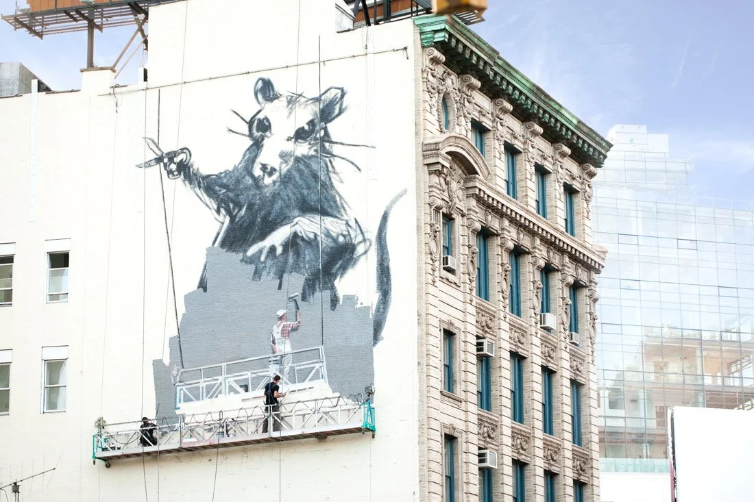 In 2008, Colossal painted four Banksy murals in support of the street artist’s pop-up gallery. All four walls were painted simultaneously in order to maintain a level of secrecy, but considering Banksy’s international renown, heavy press coverage was unavoidable.