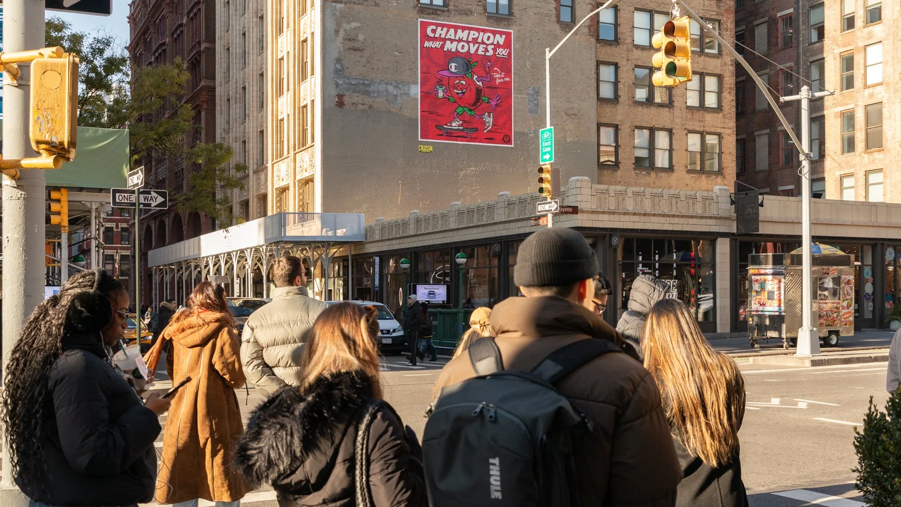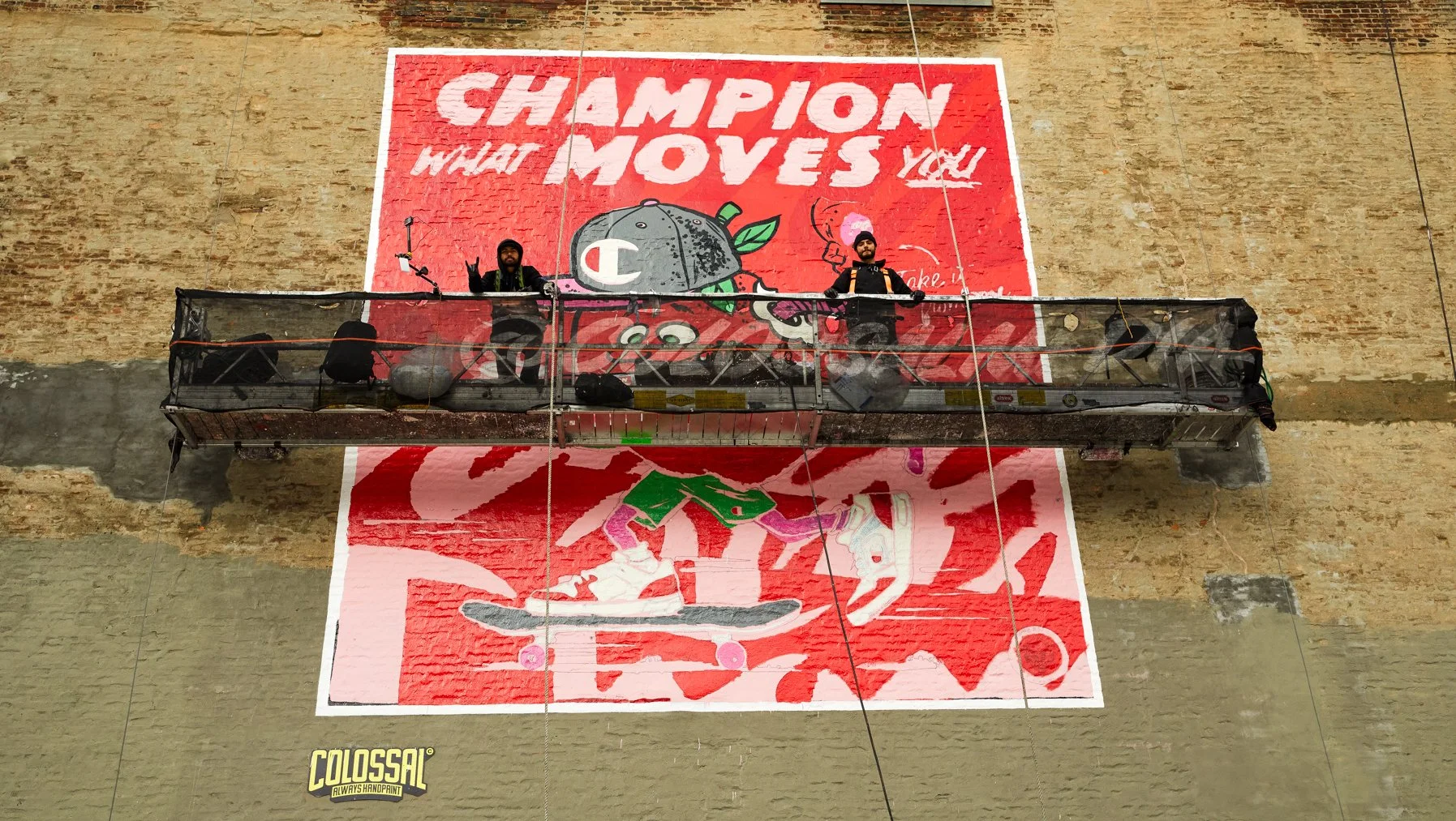 New York creative duo Morning Breath, and Chicago-based artist Fantasía Ariel joined the project, selected for their expressive movement and bold compositions. The artists designed one-of-a-kind compositions celebrating the energy of their cities, then we did what we do best and made them into Colossal murals. This intentional fusion of original artwork and a community-centric approach – while maintaining a seamlessly threaded needle of Champion’s branding – truly sets this campaign apart for its outstanding impact and connection with local markets.