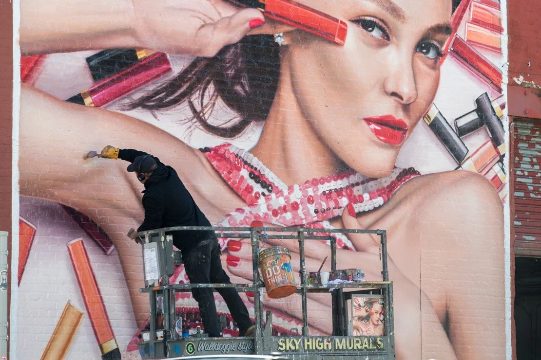 Colossal’s first murals for Chanel brought the vibrant colors of Rouge Coco Gloss to walls in Manhattan and Brooklyn. We were thrilled to work with a luxury makeup brand for the first time and just as excited to paint the striking Lily-Rose Depp. The murals were completed with a lifelike photorealism that captivated everyone from tourists to wedding photographers.