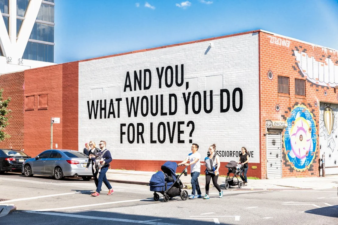 To celebrate the launch of Miss Dior Eau de Parfum, Dior transformed two flagship walls into conversation pieces by asking audiences, “what would you do for love?” The intriguing copy and high-contrast art direction prompted thousands of people to share the murals on Instagram.