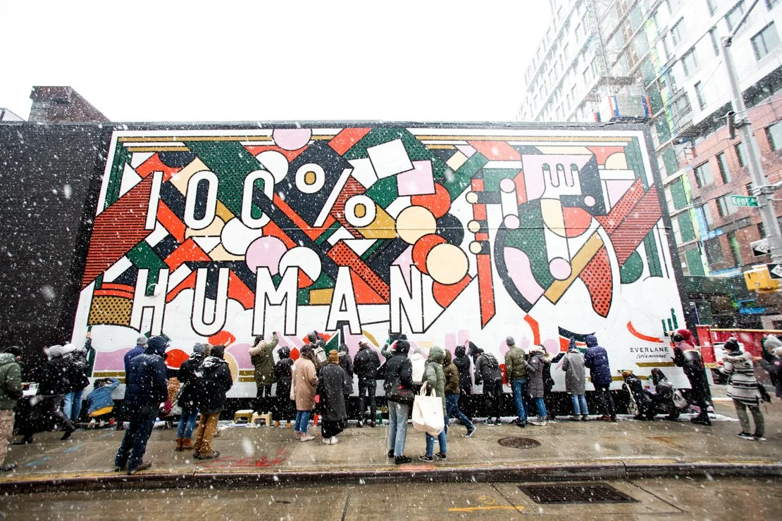 To kick off the holiday season, Everlane invited the public to help paint a massive “100% Human” mural in the heart of Williamsburg. The brand upped the ante by donating $10 to the ACLU for every participant who lent a hand.