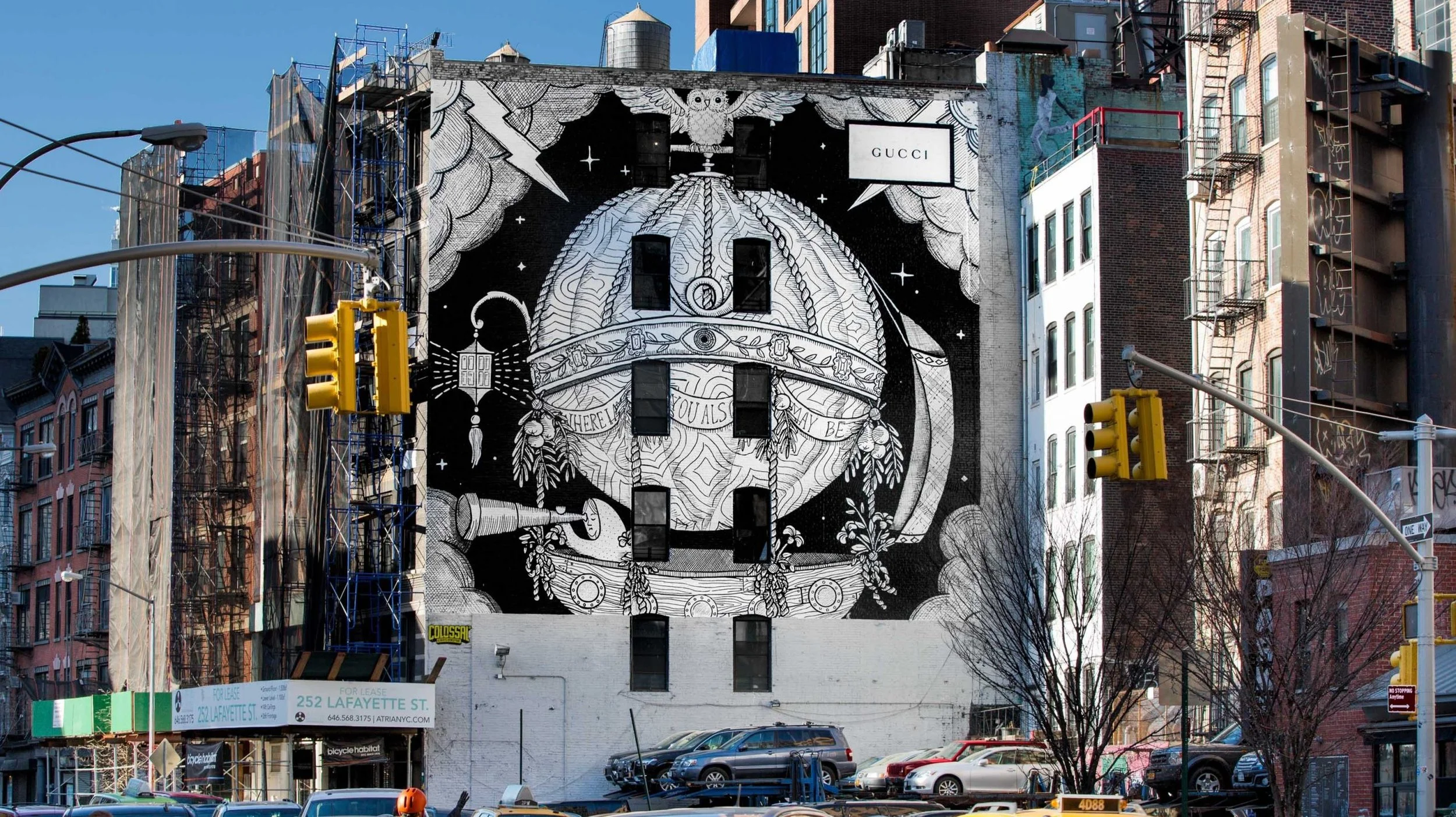 The magic happens at Prince & Lafayette, and it’s something you might have to see to believe. In less than a year, the Gucci Art Wall was recognized and tagged as a landmark in Google Maps. The Art Wall made such a mark geographically, socially, and globally, that Gucci introduced similar operations around the world, with canvases now in Milan, London, Hong Kong, Paris, and Shanghai.