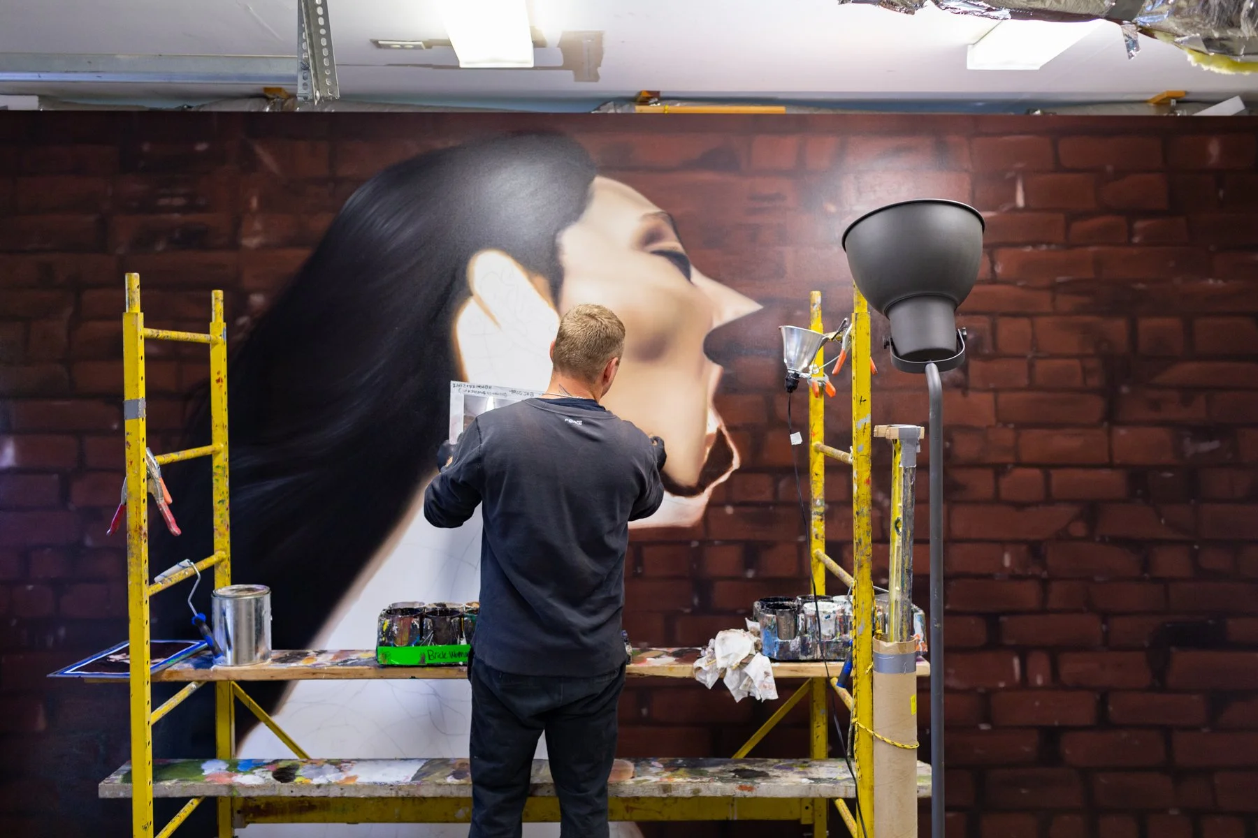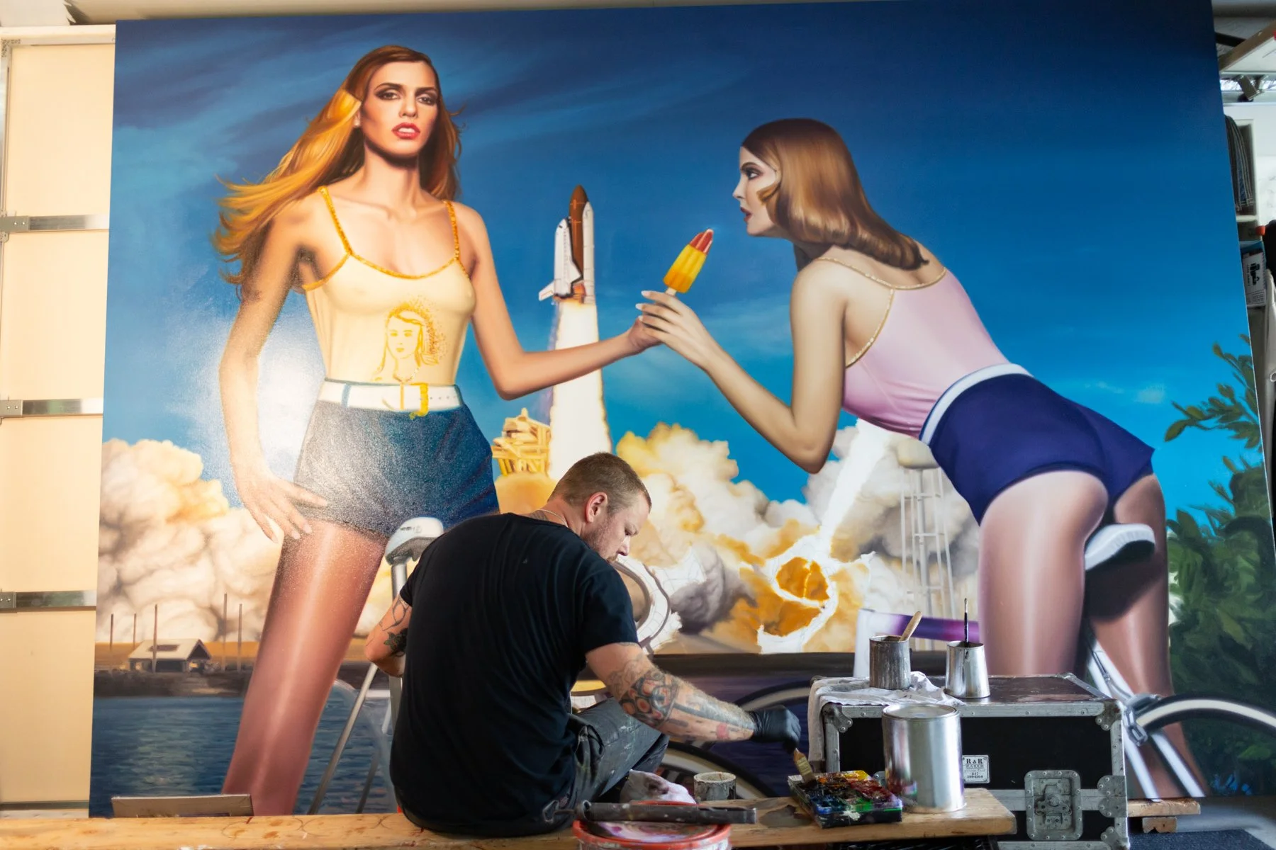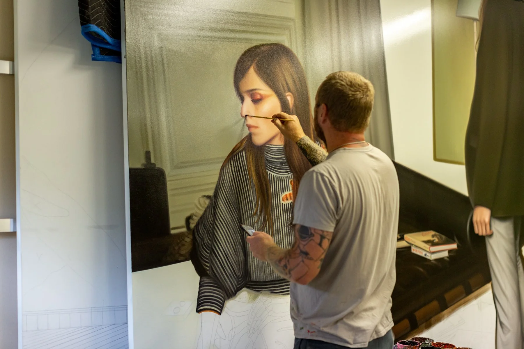“Walking around New York and Brooklyn, you see these giant wall paintings that are done by Colossal Media that are ad campaigns like Gucci or Saint Laurent, painted on the walls outside. We’ve always dreamt of having that kind of a translation of our work but then bringing it back inside. ”
