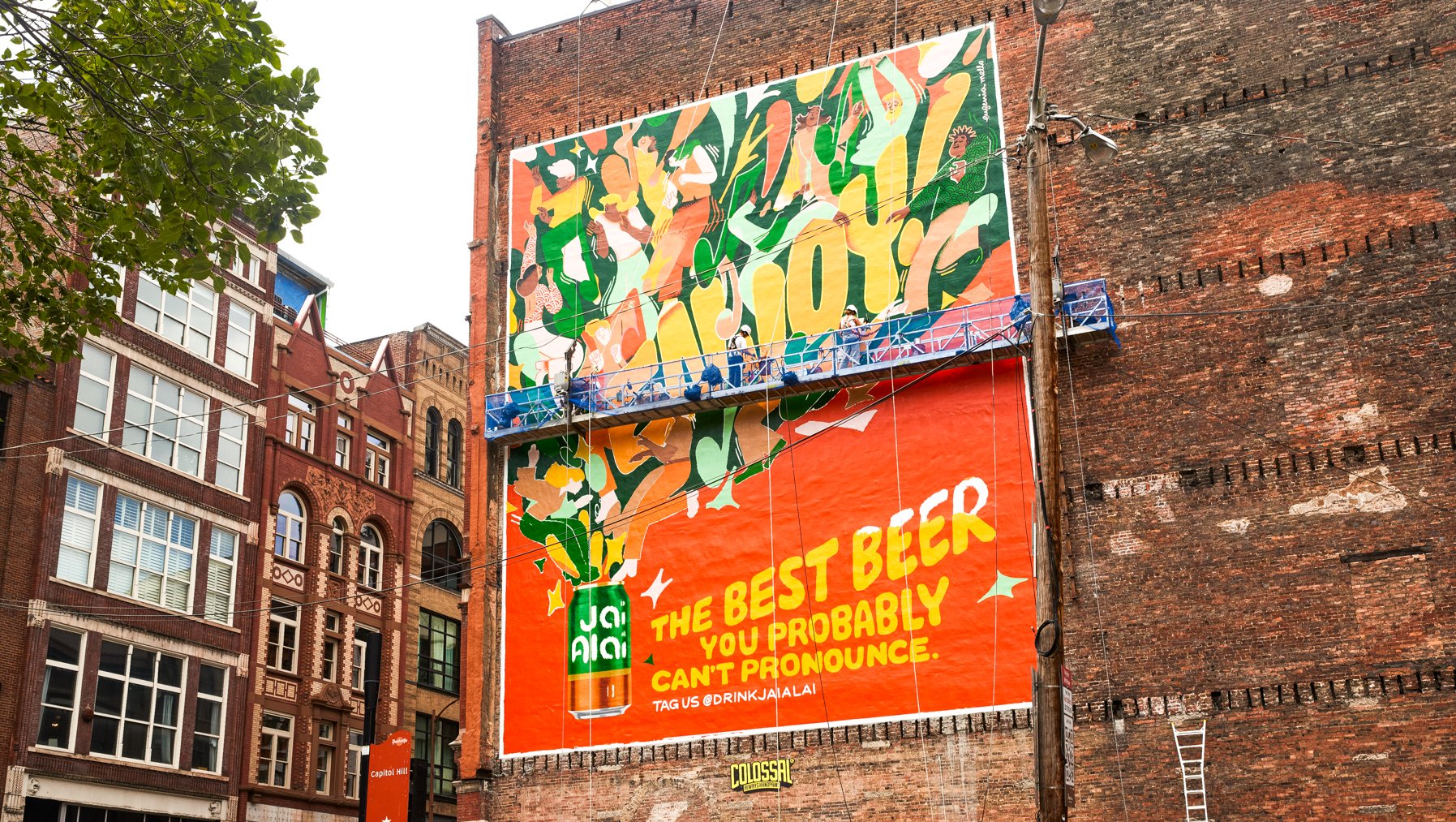 The project was a delight at every step of the process, and that joy is evident in the resulting composition which shows community and vibrancy bursting from the Jai Alai can. When the vibe is this good, we can only hope to order a second round. Cheers, and enjoy!