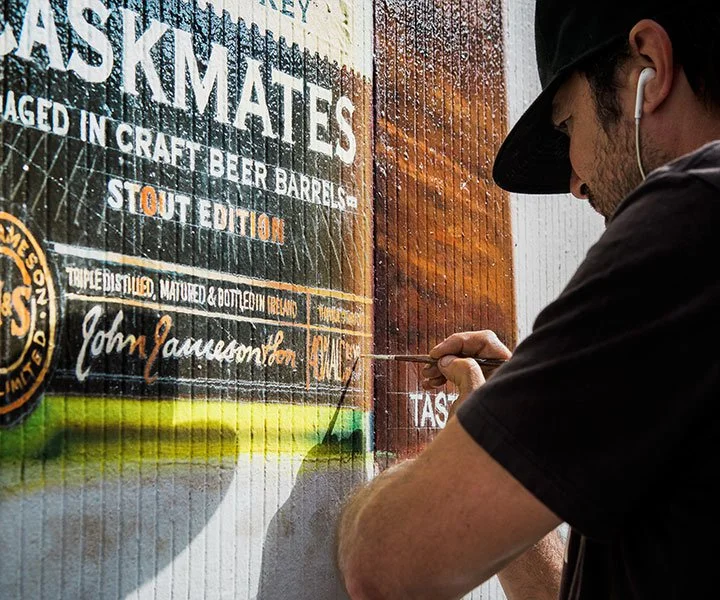 Colossal artists painted frame-by-frame shots of Jameson Caskmates being served, poured, and passed around in neighborhood bars—imagery inspired by the bar that gave birth to the whiskey’s creation.