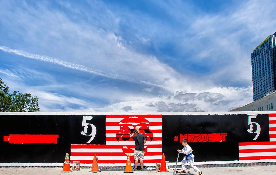 Colossal teamed up with USA to promote the series release of Mr. Robot with a unique bi-panel mural featuring photorealistic portraits of Rami Malek, who plays the series’ protagonist. For the breakout hit show’s second season, USA wanted to go bigger, dominating an entire city block with massive messaging in anticipation of the season premiere.