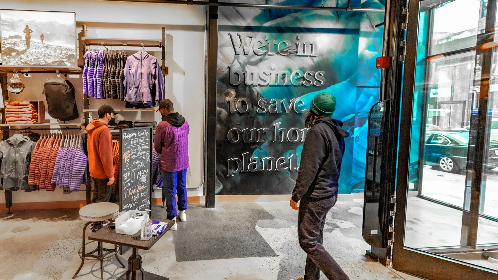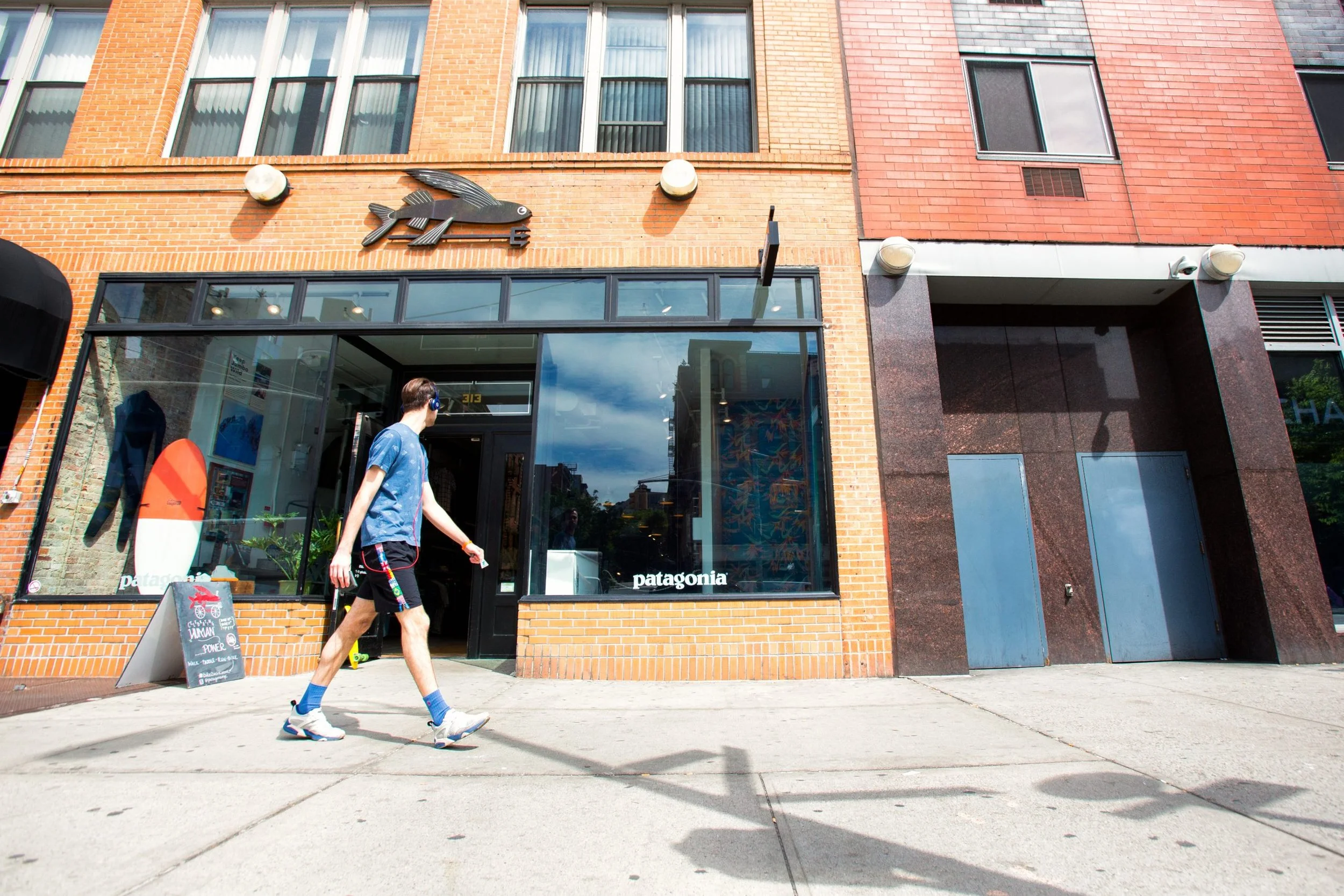 Patagonia re-engaged Colossal in 2021, this time to bring unique pops of color to their Williamsburg storefront. To add dimension to the mural, Colossal painted 3-D letters that floated off the mural but carried through the blends and shapes of the glacial design.