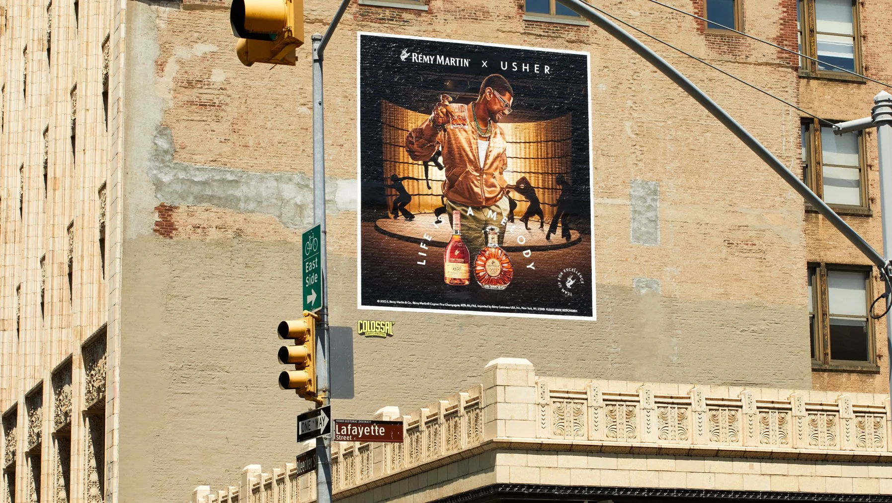 After painting 2024’s Super Bowl star, Usher, we applied projection mapping to elevate these masterpieces even more. The effect was a mesmerizing scene of sparkle and intrigue. If life is a melody, we’re humming the same tune. Cheers to another success with our friends at Rémy Martin.