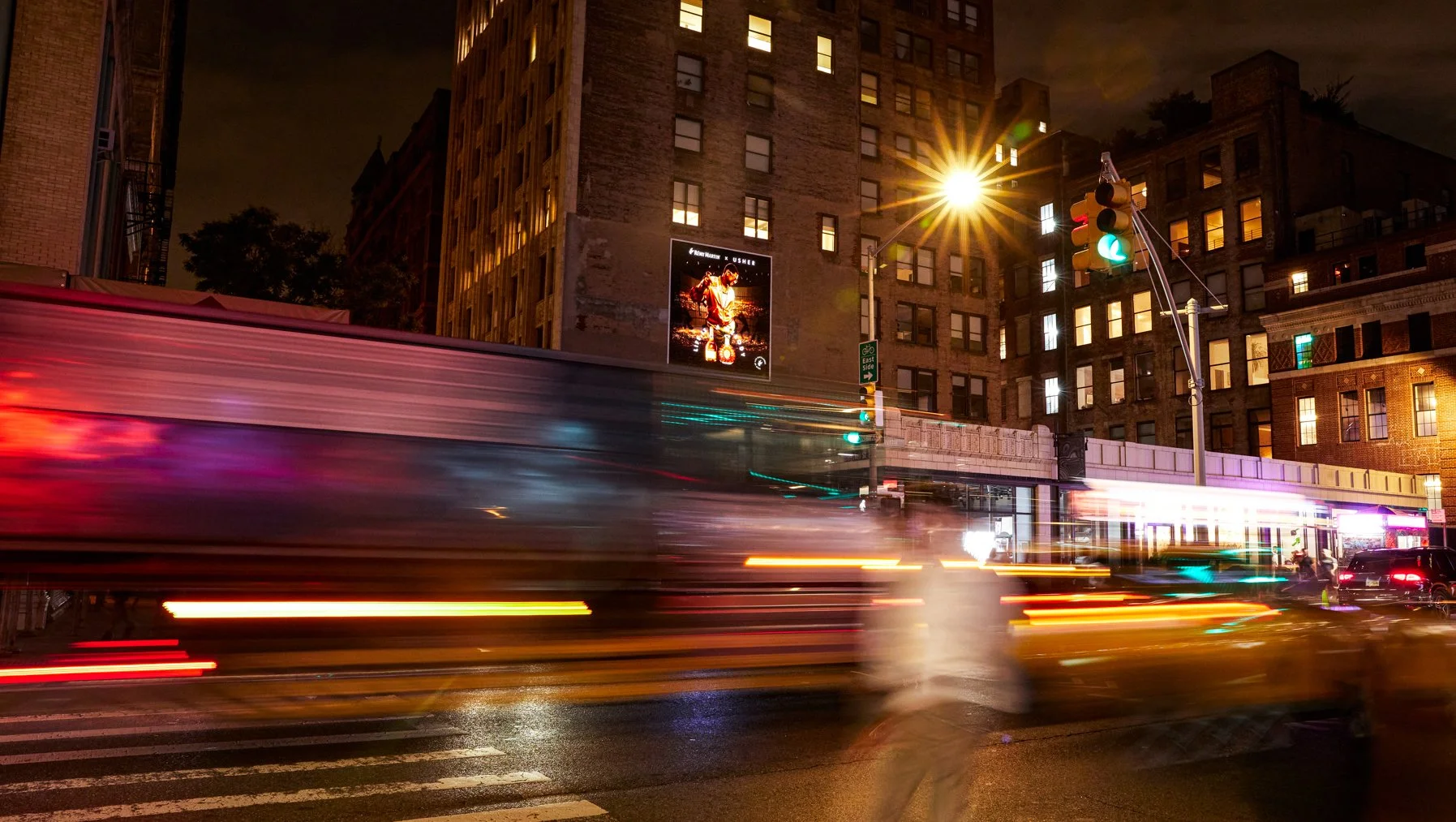 “When the sun goes down, Usher’s spotlights are switched on, shining bright on to him and his dancers, while waves of glitter bring energy and movement to this display, mimicking the smoothness of Rémy Martin cognac.”