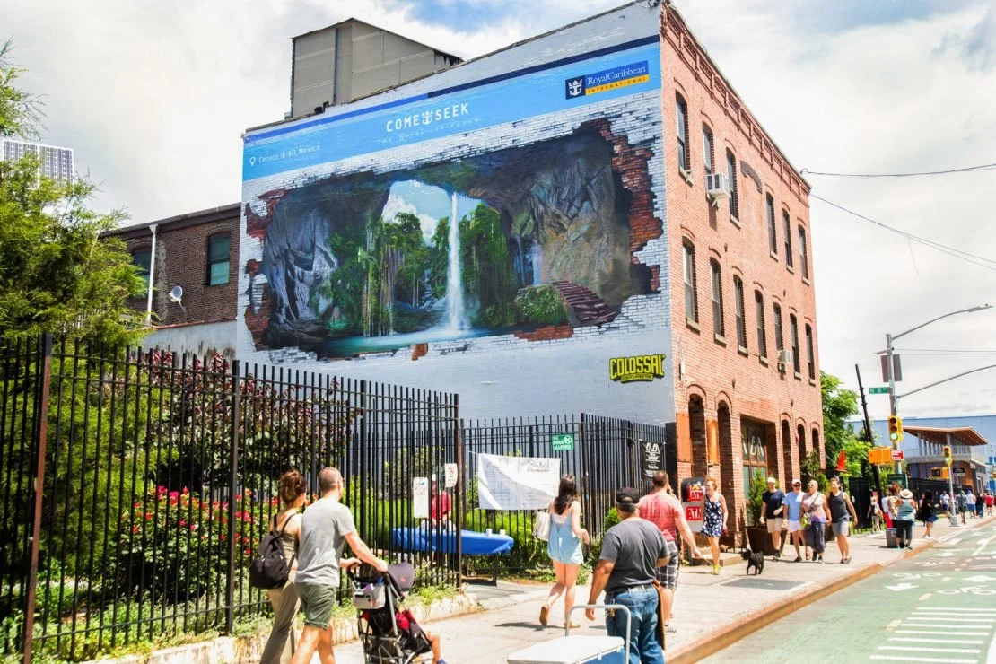 Using a tromp l’oeil effect, Royal Caribbean’s “Come Seek” campaign literally breaks down the walls between viewers and vacations. To create the illusion, we matched our paint to Williamsburg walls then, brick by brick, turned wallscapes into tropical landscapes.