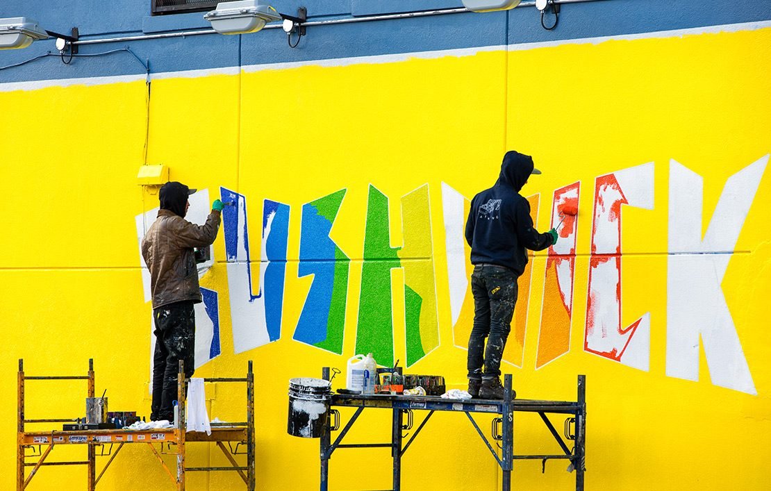 Colossal recreated Snapchat geofilters as colorful, larger-than-life murals in key spots throughout New York City and Boston. The hand painted, user generated filters brought a fun analog take to the digitally-centered platform. A Snapchat mural painted by Colossal in Brooklyn was featured on the platform’s popular New York Story, along with a note that “all ads in Bushwick and Williamsburg should be painted.” We agree!