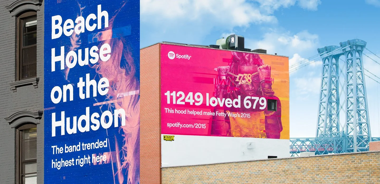 To promote Spotify’s fifth annual Year in Music, 360i approached Colossal looking for creative concepts that would engage local audiences for their first ever out-of-home campaign. The objective was to reach viewers in a way that matched the personalized user experience associated with the Year in Music platform, a website where users can view custom insights about their listening habits over the past year, including top songs, artists and genres.