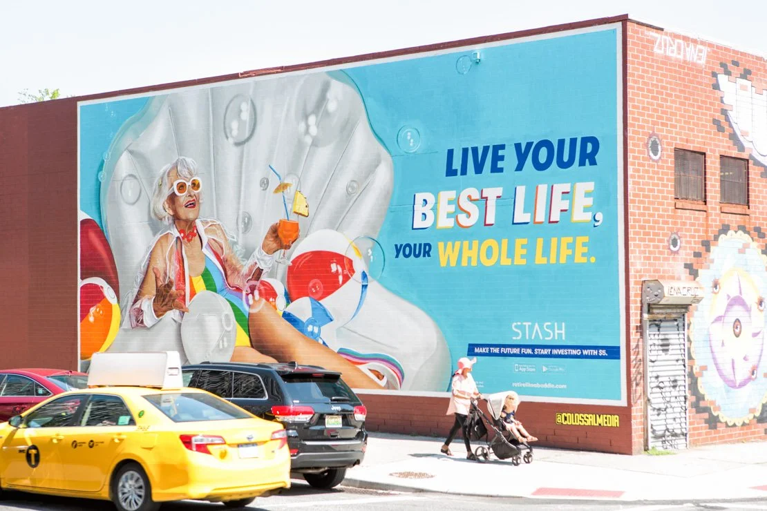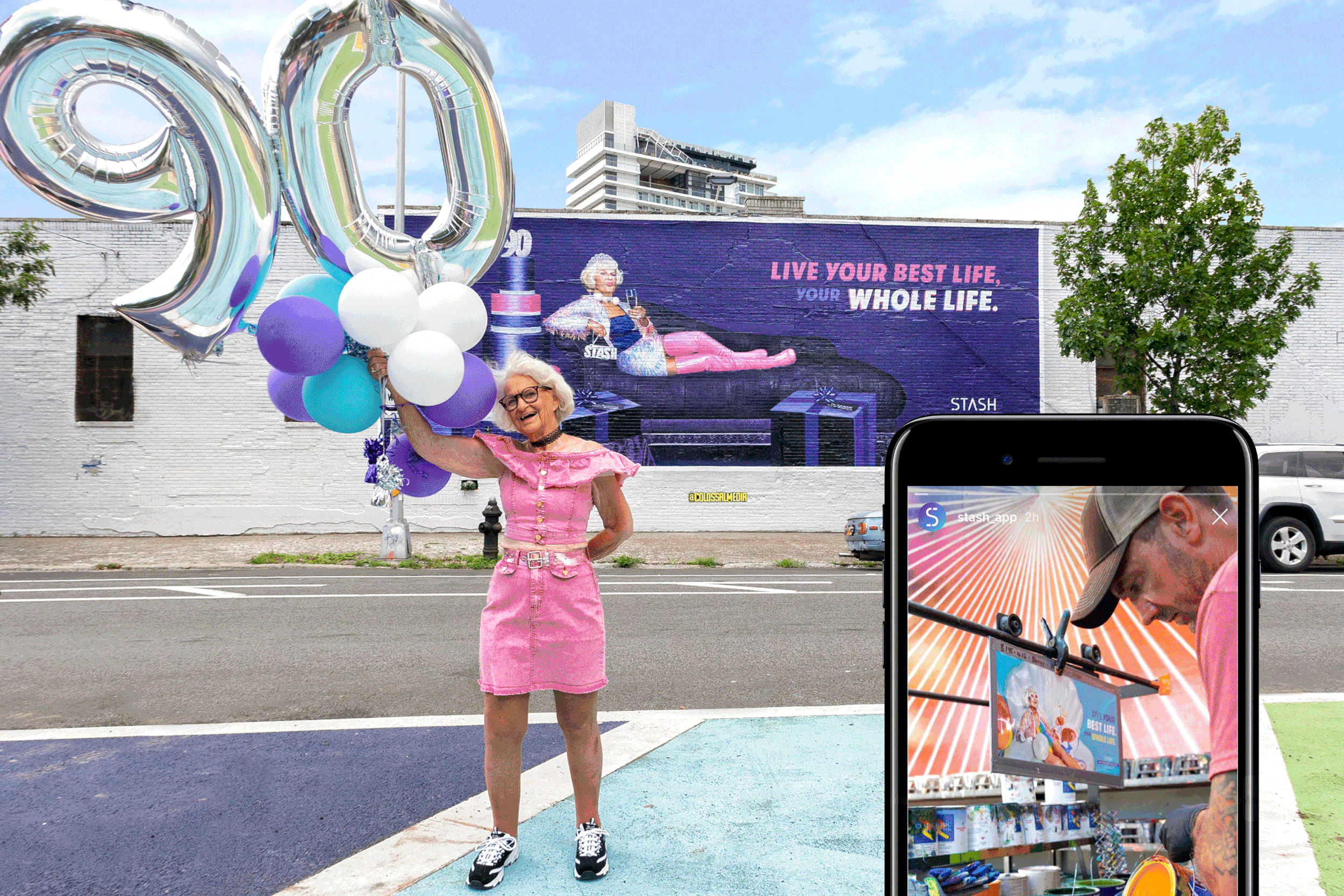 Baddie Winkle is arguably Instagram’s flyest influencer. We’re big fans, and it turns out Stash is, too — she was the face of their Summer 2018 campaign, which encouraged young people to “retire like a Baddie”. We painted two Williamsburg walls showing everyone’s favorite grandma living her best life as she turned 90. They were officially revealed on Baddie’s actual birthday, which she celebrated with Stash and friends at nearby bar Kinfolk.