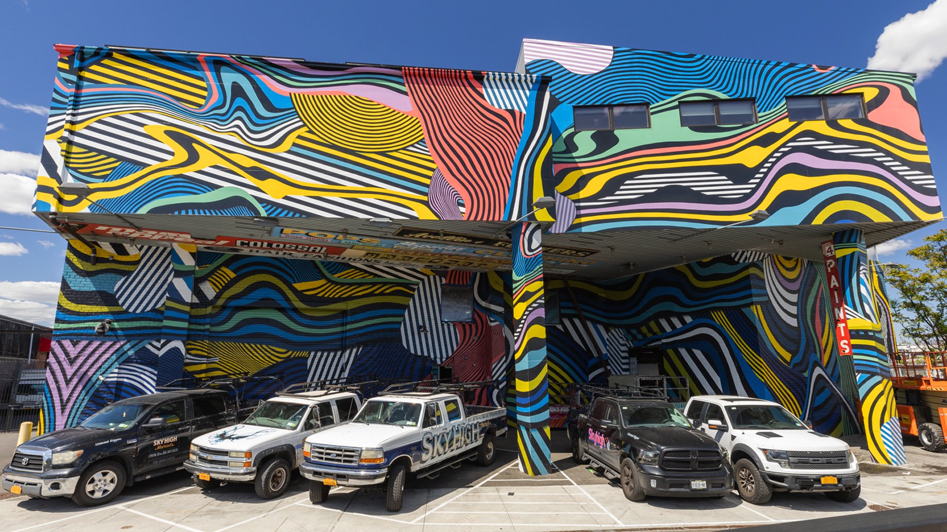 Jessie Jones (Painter): You just want it to definitely catch people’s attention and really draw them in. You know you don’t know them to crash with cars while they're driving, but you want to really stand out and make your presence known. And I think that’s what’s really cool about our shop being painted. The crazy lines and everything really make the whole building kind of flat with the way we’re able to transfer the lines from over the corners pretty seamlessly, so I think that’s a really cool aspect about the building.