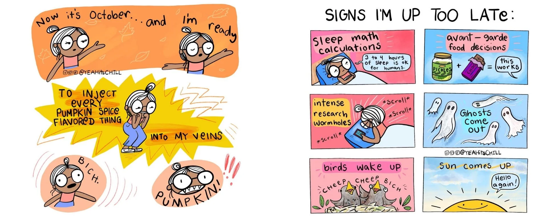 CR: All of that. Buzzfeed picked it up and it went semi-viral and I got a lot of sales from that. So then I was like, I can pursue this career path. So while I was figuring out a publishing company, and working on other self-published stuff, I started my comic series, Yeah It's Chill, based on my experience and anxieties around starting my own business. And then that comic ended up getting picked up by a bunch of places. I started getting clients from the Instagram account, and now here we are a few years later. I started that in 2017, and I've been a full-time artist since 2019.
