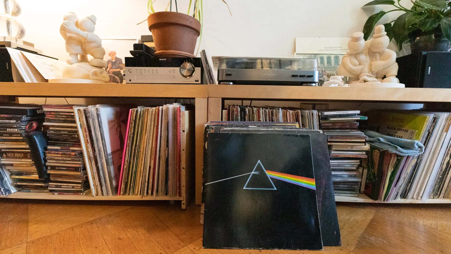Through the looking glass; over the rainbow; second star to the left and straight on ‘till morning. Follow these directions and you’ll probably find Daniel Herwitt’s studio, but today we arrive on the G train. Inside is everything you’d hope to see within an artist’s classic brownstone: piles of literature and reference books, eclectic gallery walls, and stacks of vinyl records with lush vines tumbling through the tableau.