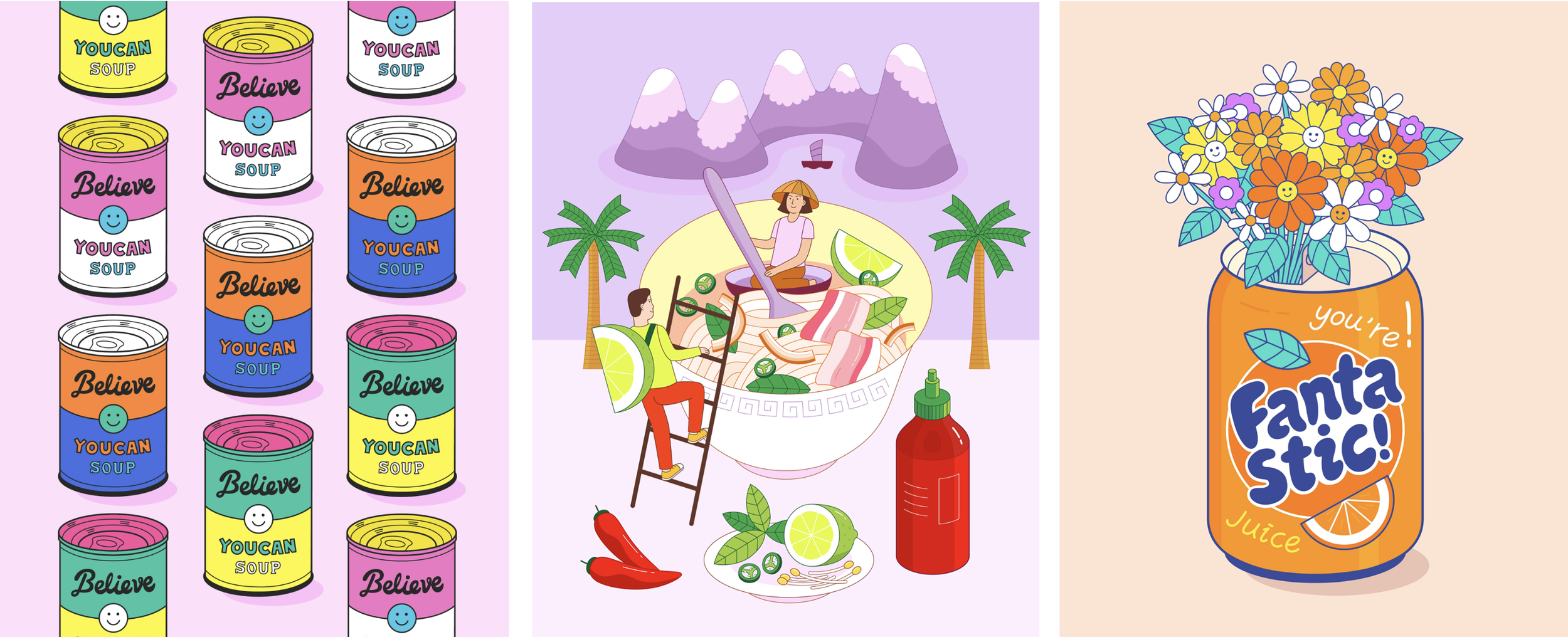 The magic of Hu’s oeuvre is the joy she can elicit. Whether she’s at an open mic or the drawing board, her creative expression is defined by an earnest invitation to share in delight (and often food). This afternoon, we make a meal of French pastries and good conversation, following a journey chasing the horizons of her creativity and choosing to look toward the light.