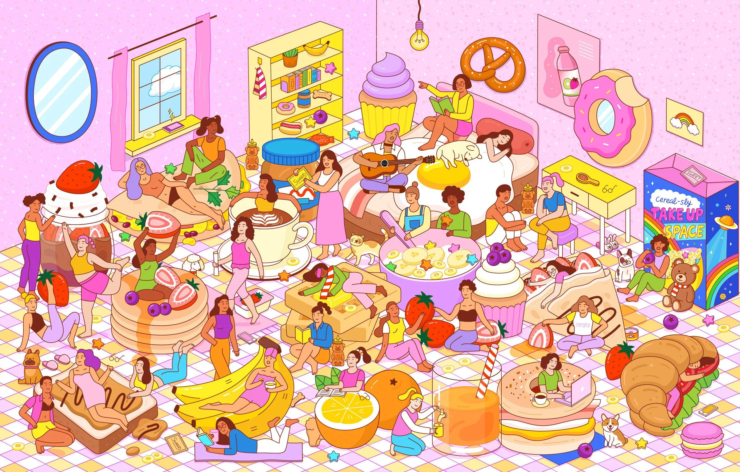 DH: The reason I can be so happy is actually because my emotions are really strong. Meaning when I'm sad, I'm really sad — but I don't draw about that. I don't have a problem when people make art about their sadness because that’s another way to process. Ironically, I actually just eat when I'm sad. [Laughs]