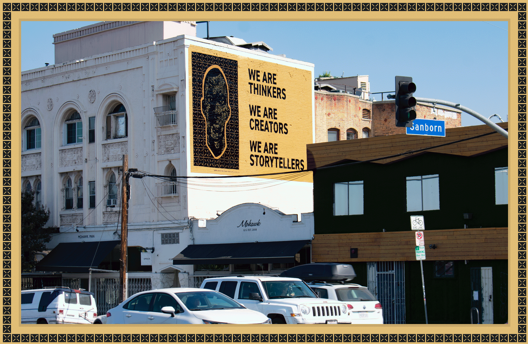The result is Represent: Black Arts, the first manifestation of our local public arts initiative, Represent:, which spotlights original works by artists from underrepresented communities. For this we partnered with Malene Barnett, Founder of Black Artists + Designers Guild, and Karen J. Revis, printmaker and Guild member, to paint an original, unapologetically Black work on walls in Los Angeles and New York City.