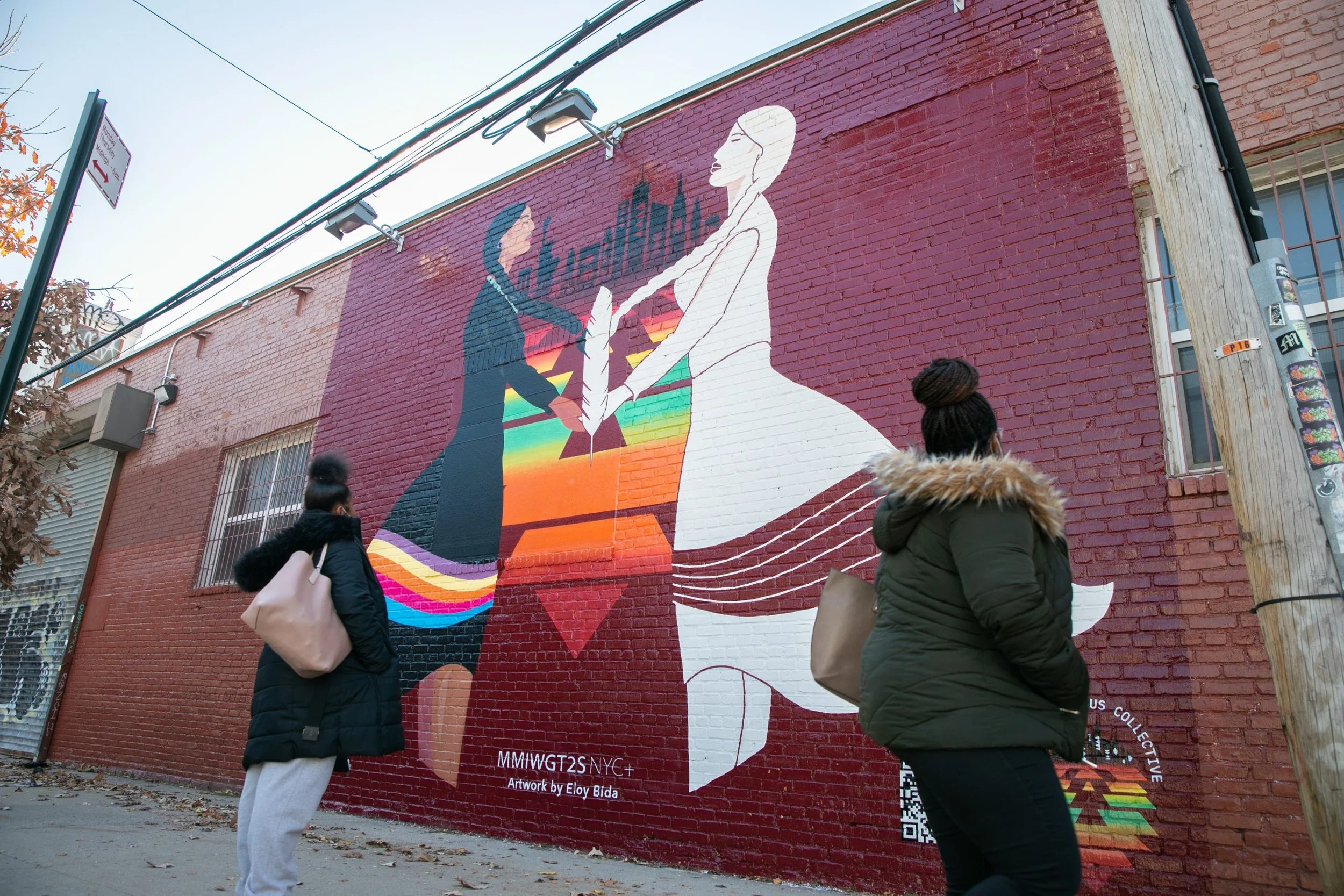 Immediately after the Start Today program established in early 2021, we were approached by a member of the Urban Indigenous Collective to discuss a potential partnership. We spent months brainstorming how best to get involved and advance their imperative work, ultimately including it in our Represent mural series in autumn of 2021. We were honored to partner with the UIC to create a mural designed to highlight the MMIWGT2S NYC+ project and amplify the impact and presence of the UIC. This is our first ever mural for which Colossal employees across all departments participated in production, a response to overwhelming support and desire to volunteer from our team.