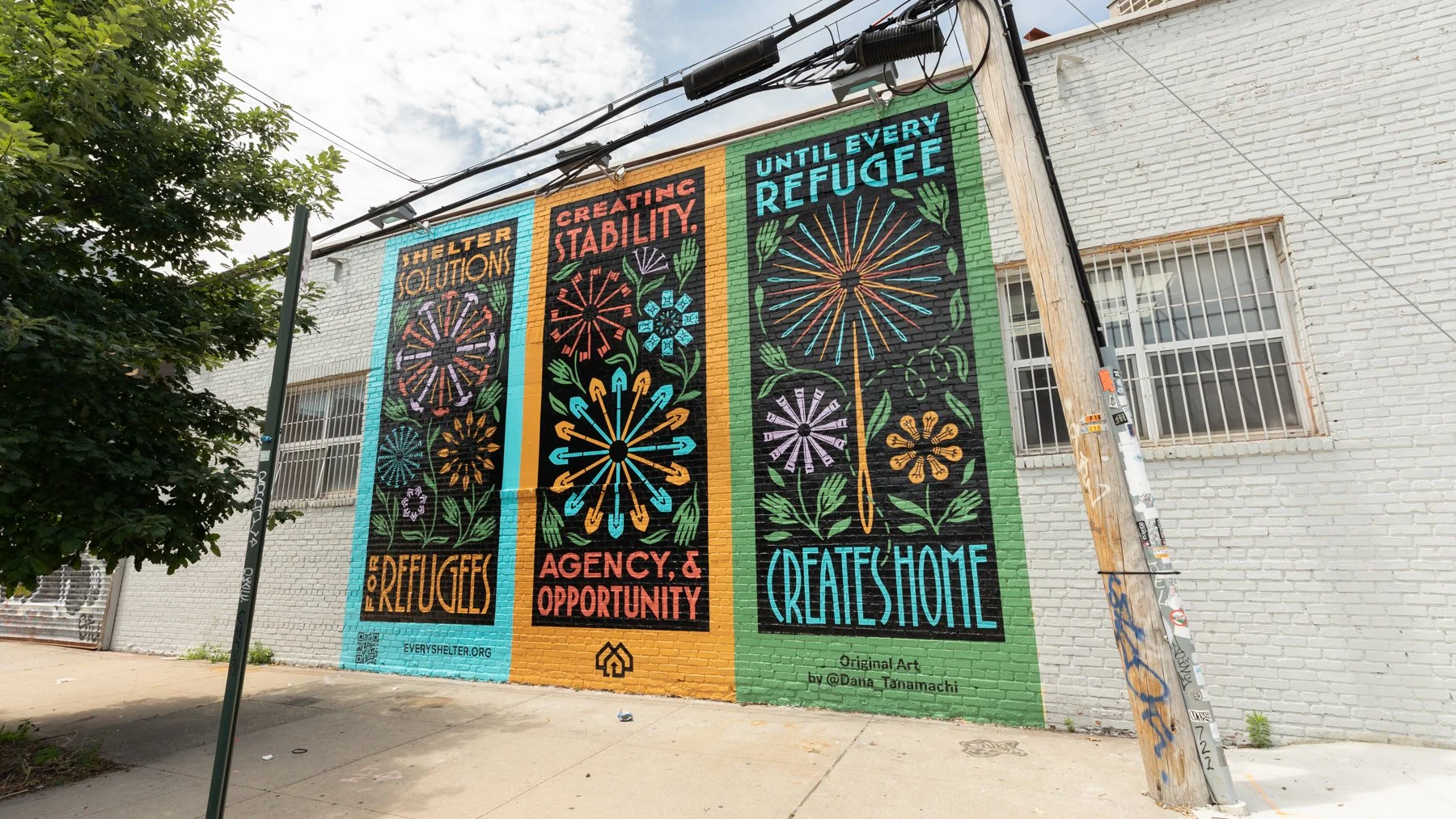 To mark World Refugee Day, Every Shelter partnered with Colossal Media to bring a hand-painted mural to Brooklyn with art by NY’s Dana Tanamachi.